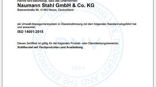 NAUMANN STAHL ist nun nach ISO 14001:2015 zertifiziert